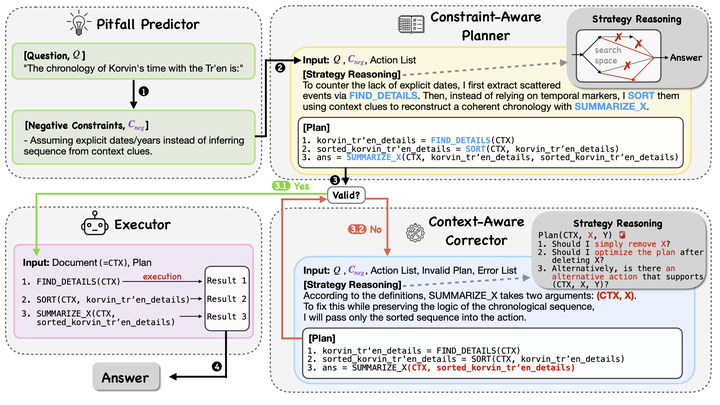 Large language models (LLMs) struggle with reasoning over long contexts where relevant information is sparsely distributed. Although plan-and-execute frameworks mitigate this by decomposing tasks into planning and execution, their effectiveness is often limited by unreliable plan generation due to dependence on surface-level cues. Consequently, plans may be based on incorrect assumptions, and once a plan is formed, identifying what went wrong and revising it reliably becomes difficult, limiting the effectiveness of reactive refinement. To address this limitation, we propose PPA-Plan, a proactive planning strategy for long-context reasoning that focuses on preventing such failures before plan generation. PPA-Plan identifies potential logical pitfalls and false assumptions, formulates them as negative constraints, and conditions plan generation on explicitly avoiding these constraints. Experiments on long-context QA benchmarks show that executing plans generated by PPA-Plan consistently outperforms existing plan-and-execute methods and direct prompting.